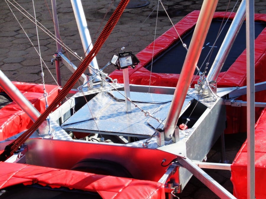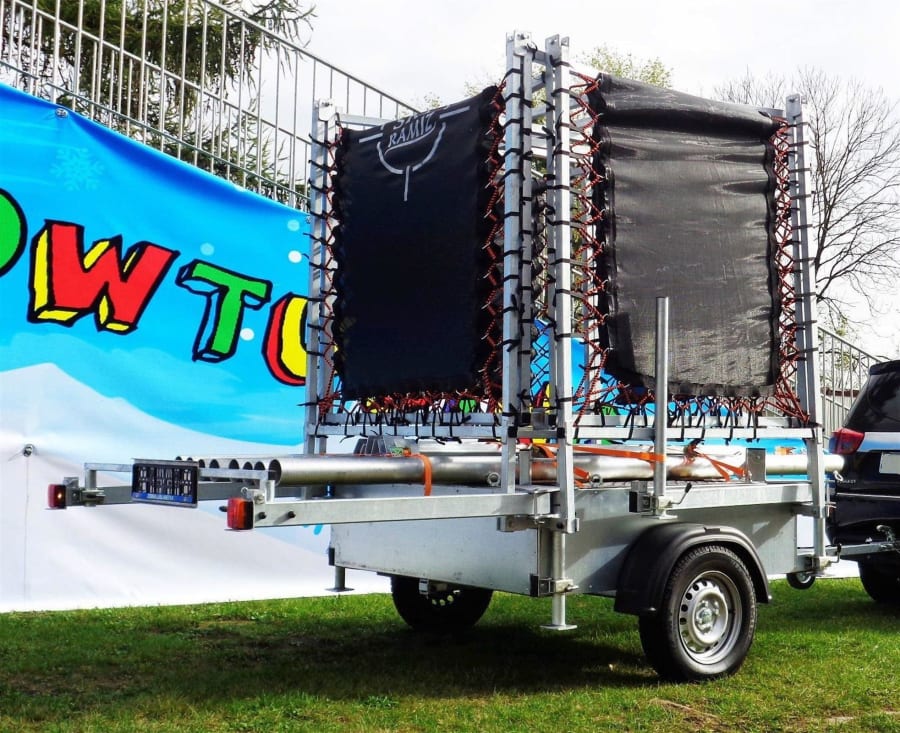 Fully galvanised trailer with the trampolines fixed to the trailer with speeds up setting up and dismantling time.